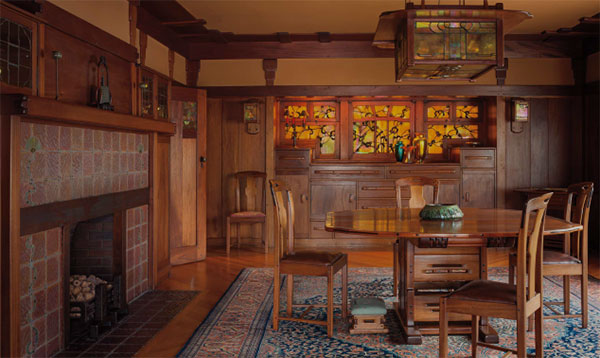 The Gamble House collection, overseen by Jennifer Trotoux, Director of Collections and Interpretation, centers on the original furnishings designed specifically for the house, complemented by decorative arts from the Gamble family and later donations. These include Asian metalwork and ceramics, Persian rugs, and a notable collection of American art pottery, particularly Rookwood.